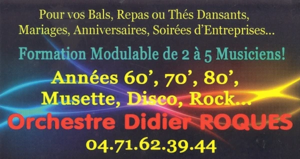 “Orchestre variété, années 60, 70, 80 et tubes plus récents ainsi que musette. Nous sillonnons une grande partie de la France depuis 2007 : bals, thés dansants, mariages, anniversaires, soirées d’entreprise, soirées de gala, repas dansants, comités des fêtes, mairies, C.C.A.S… Nous proposons plusieurs formules pour nous adapter au mieux à votre budget . Répertoire adapté à la demande et en fonction du public. Musette avec les grands standards de l’accordéon incluant les danses en lignes et bien sur un clin d’œil au folklore de nos régions. Variétés françaises et internationales des années 60′, 70′, mais surtout 80′, disco, pop, rock … Chacun des musiciens possède une grande expérience dans divers orchestres depuis de nombreuses années. La sonorisation et l’éclairage sont inclus, fournis et installés par l’orchestre. Bonne ambiance, qualité musicale et professionnalisme sont au rendez-vous ! Tarifs à partir de 500 €.”